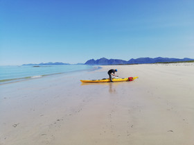 Our journey was nearing an end as our final day saw us paddling through the fishing town of Svolvaer and out the other side, back towards Hopen.